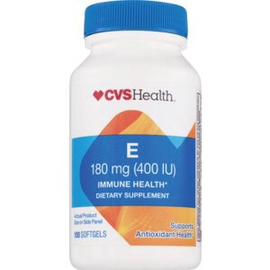 • Immune and antioxidant health support -- • Dietary supplement -- • Tamper-evident packaging -- • 180mg vitamin E per capsule -- • Bottle of 100 softgels -- CVS Health Vitamin E Softgels, 180 mg are …
