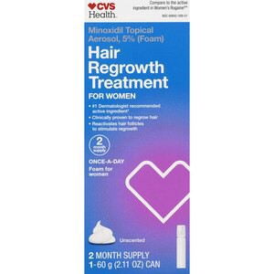 Compare to the active ingredient in Rogaine for women. Hair Regrowth Treatment For Women, Minoxidil 5%, Topical Aerosol (Foam) contains the #1 Dermatologist Recommended Active Ingredient for hair regr…
