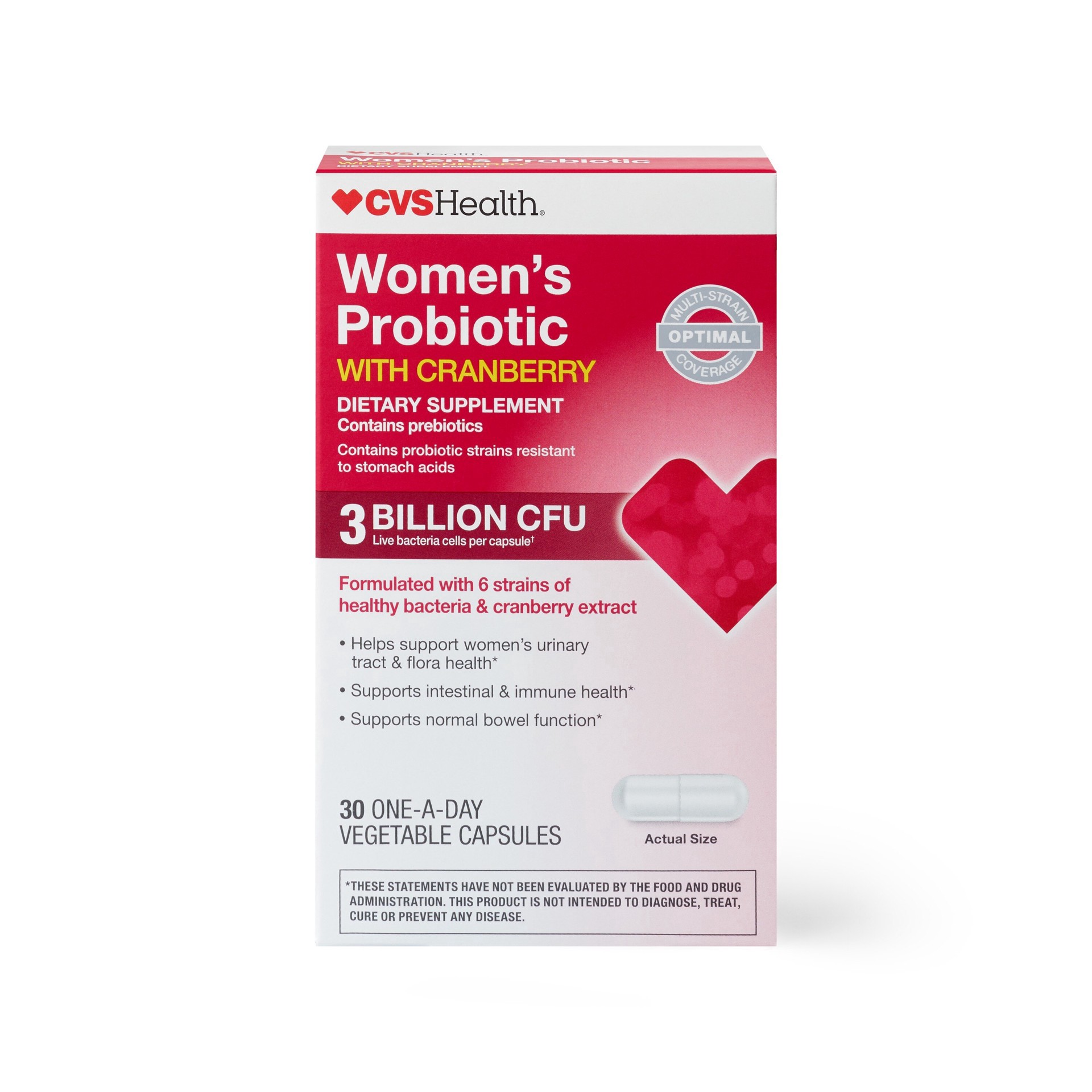 CVS Health Women's Probiotic & Cranberry Capsules are formulated with six strains of healthy bacteria and pure cranberry extract. This dietary supplement contains prebiotic fibers and probiotic strain…