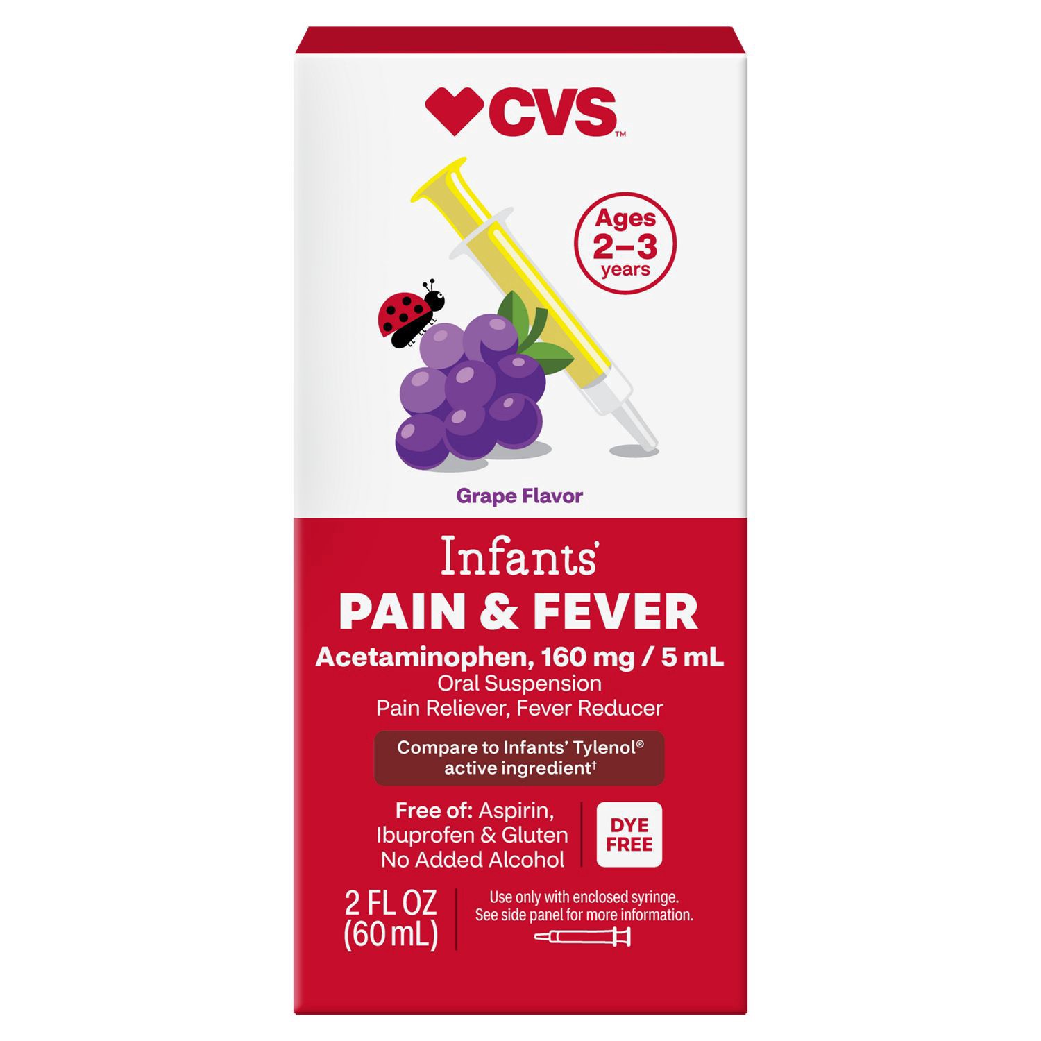Compare to the active ingredient of Infants' Tylenol Oral Suspension. When your little one relies on you to feel better, turn to CVS Health Infants' Pain and Fever, Acetaminophen 160 mg per 5 mL, Dye-…