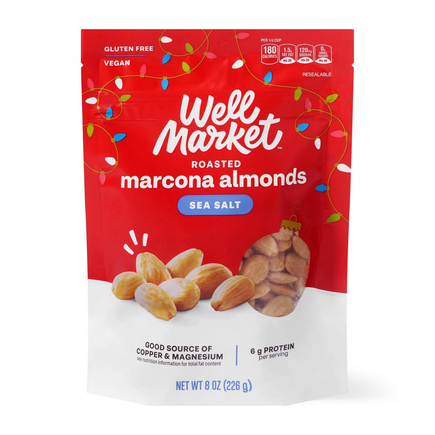 Well Market™ Roasted Sea Salt Marcona Almonds are a premium way to level up your appetizer spread this holiday season. Softer and more flavorful than traditional almonds, each handful is oil roasted t…