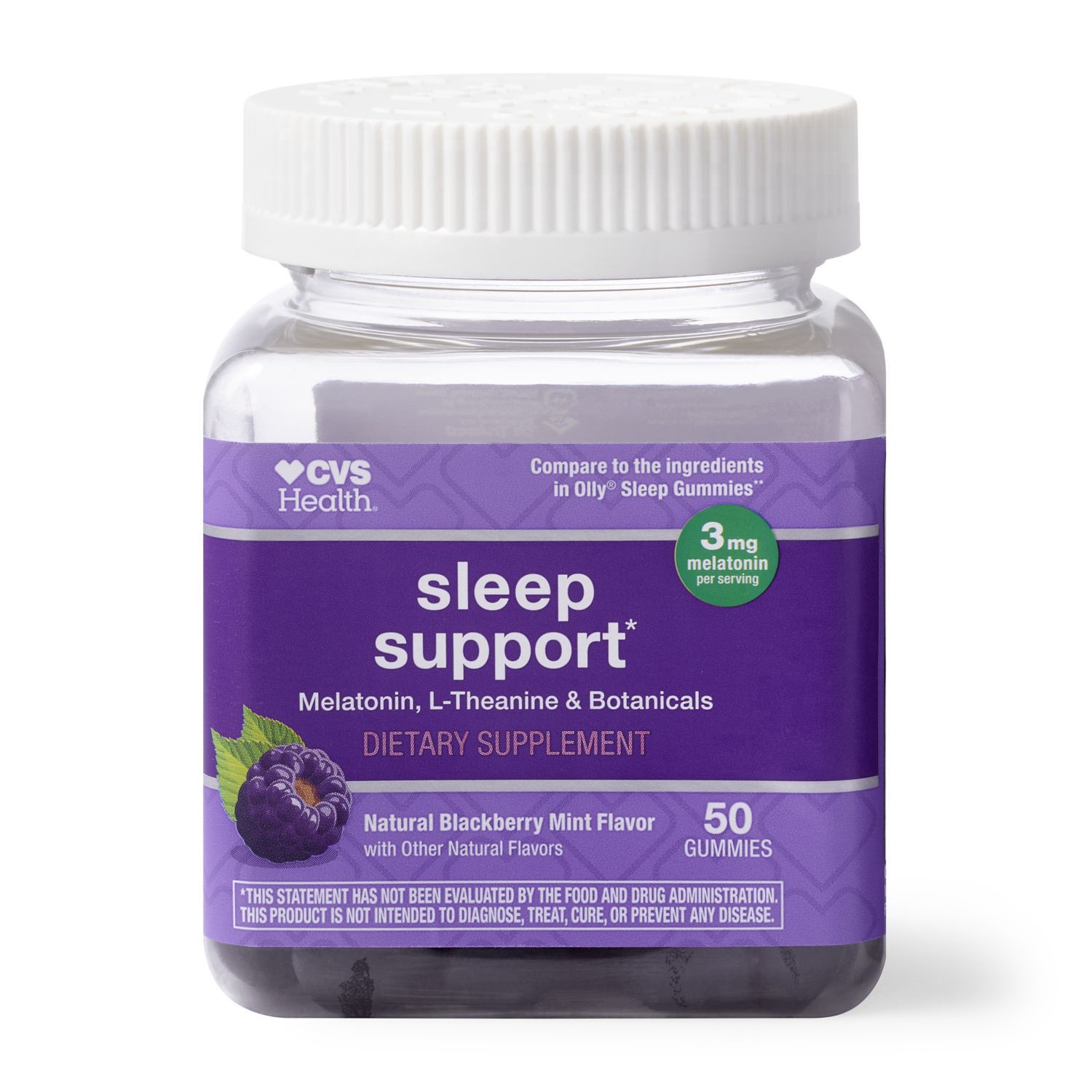Includes 50 gummies. Helps support sleep*. Natural blackberry and mint flavors with other natural flavors. Does not contain gluten, milk, eggs, or peanuts. When you're having trouble falling asleep, C…