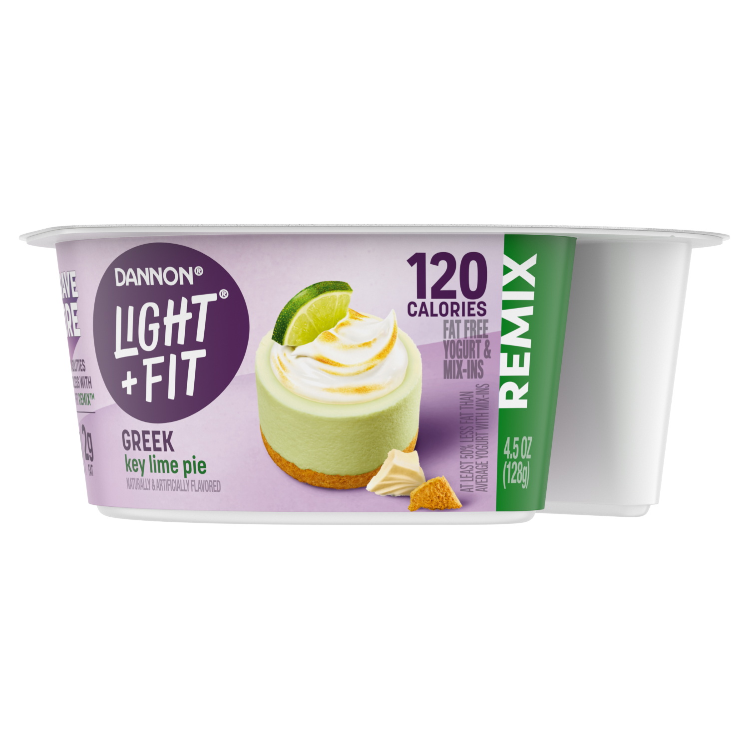 Looking for a delicious fat free yogurt with a fierce flavor and craveable mix-ins? Give your taste buds a reason to rejoice with Dannon Light + Fit REMIX Key Lime Pie Fat Free Greek Yogurt with Graha…