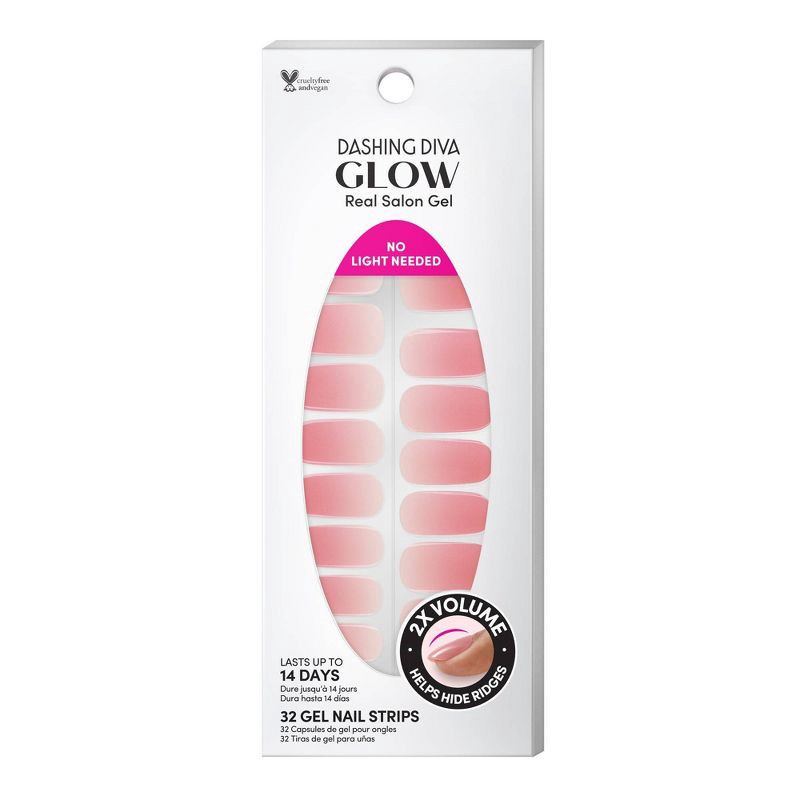 Glam never takes a day off! Pink and white ombre gel nail strips featuring a double gel formula for a smooth finish! Experience a medium coverage gel nail strip with Dashing Diva GLOW. GLOW visibly im…