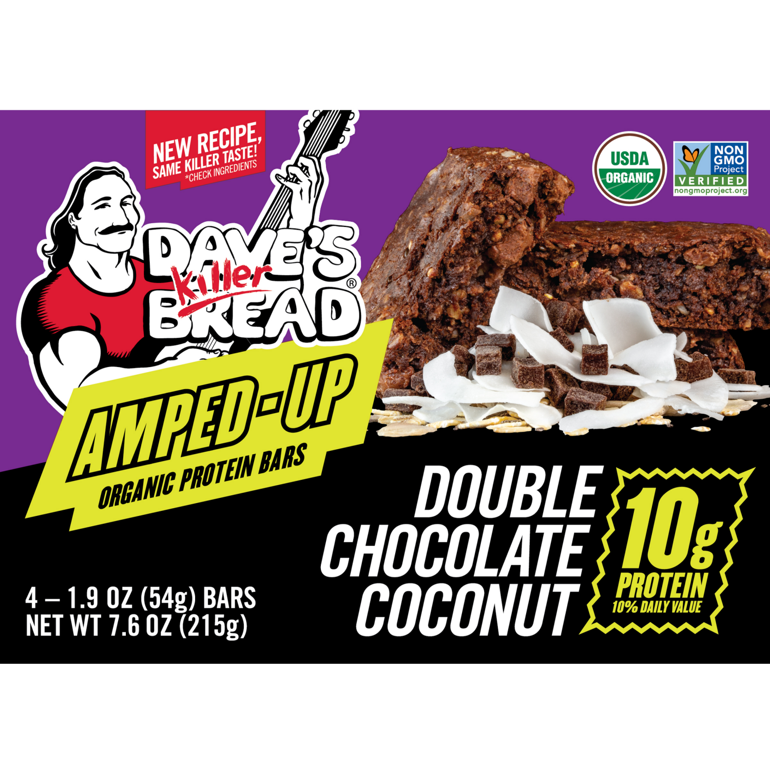 Dave's Killer Bread Amped-Up Double Chocolate Coconut Organic Protein Bars, 4 Count