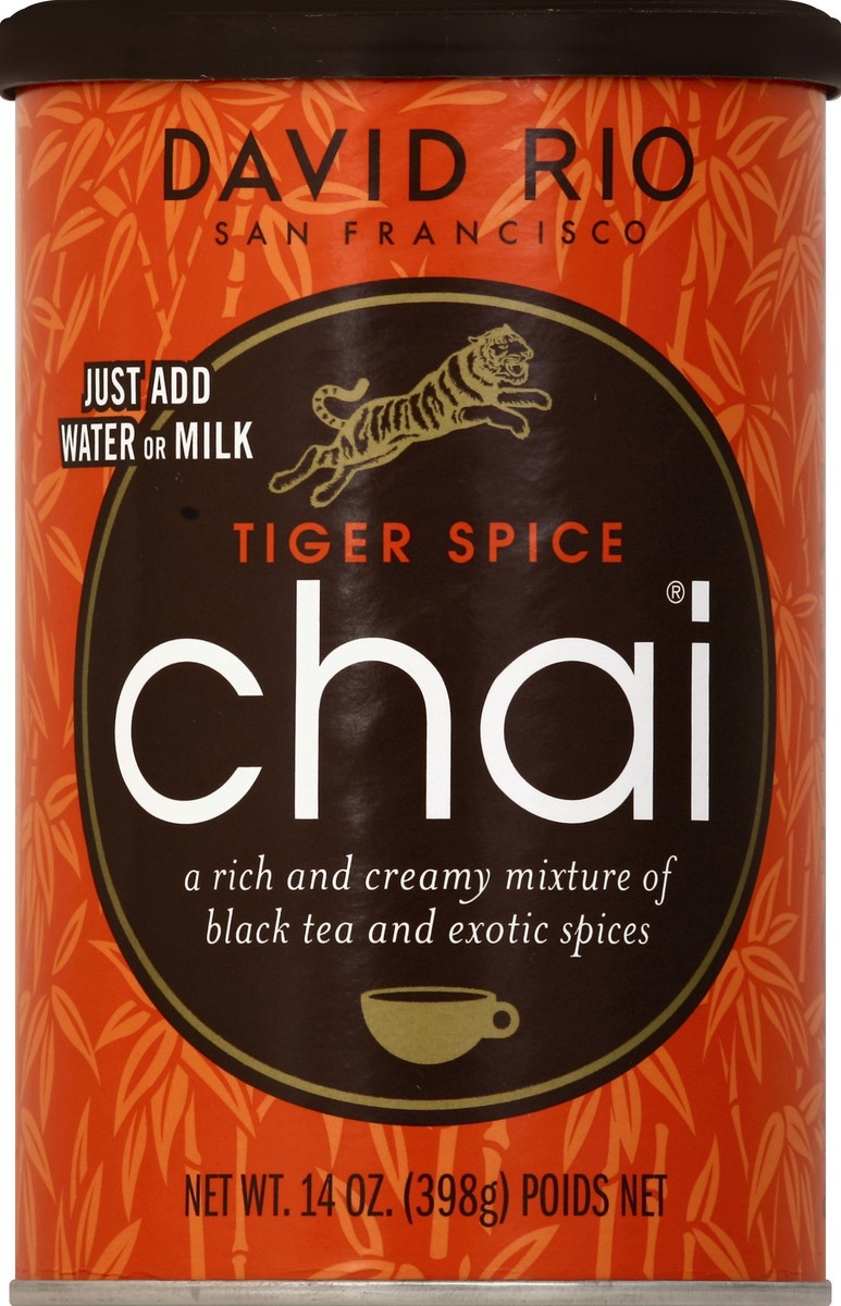 A rich and creamy mixture of black tea and exotic spices. David Rio - San Francisco. Prepared for David Rio. davidrio.com. Gluten free. No hydrogenated oils. No trans fats. David Rio Tiger Spice Chai …