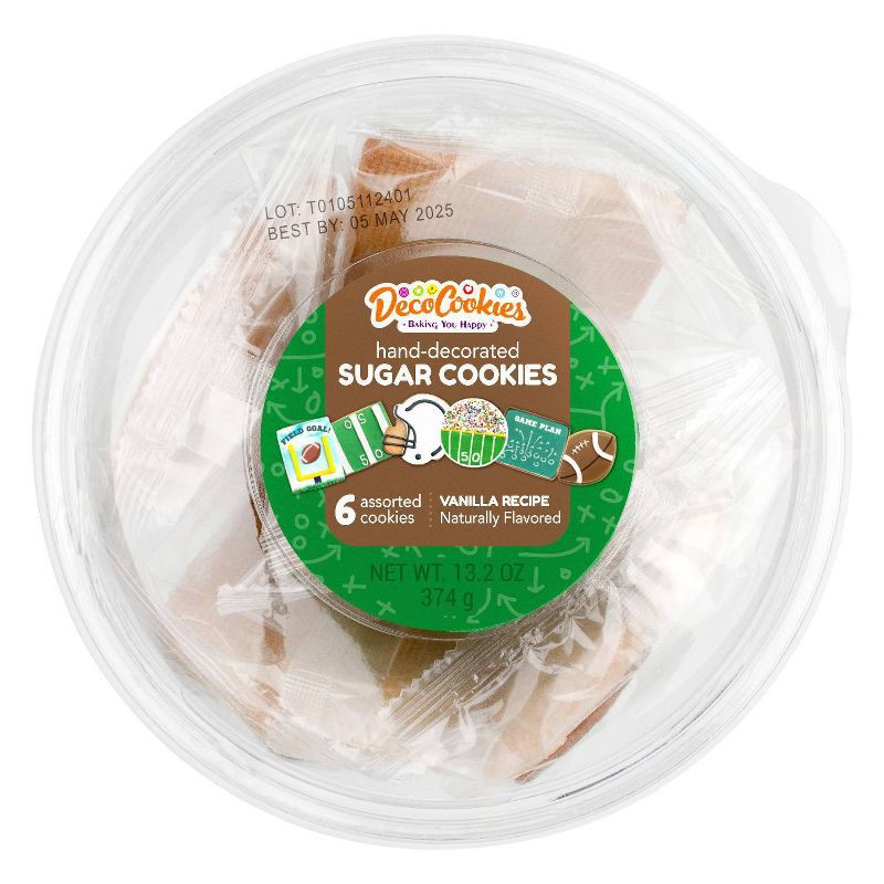 Score big with DecoCookies' Football Hand-Decorated Sugar Cookie Tub – the ultimate treat for football fans of all ages. Each tub includes six hand-decorated vanilla sugar cookies, each featuring uniq…