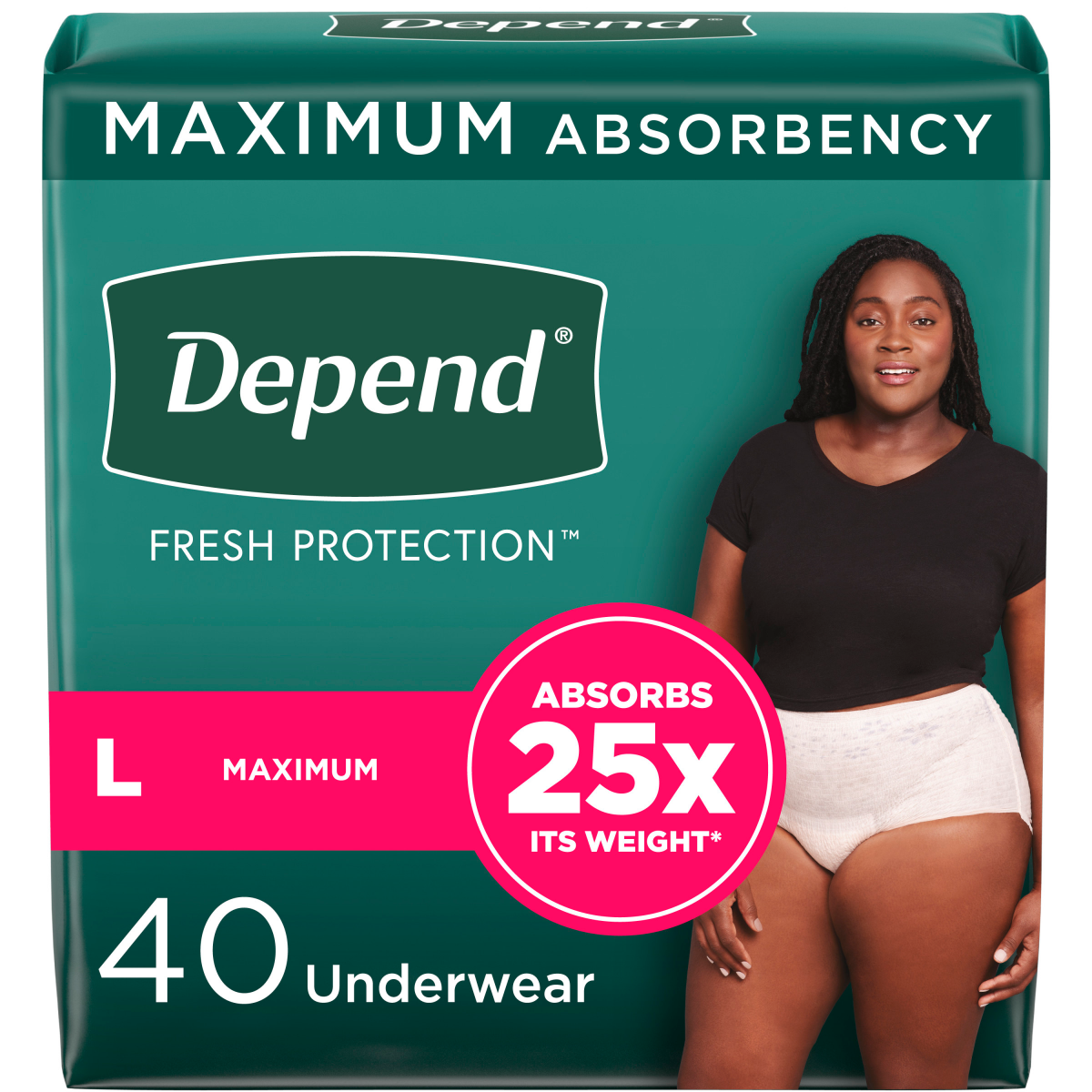 Extremely soft, yet strong, Depend for Women Incontinence Underwear featuring a new beautiful blush color and three new feminine designs is ideal for bladder incontinence. Absorbent material instantly…