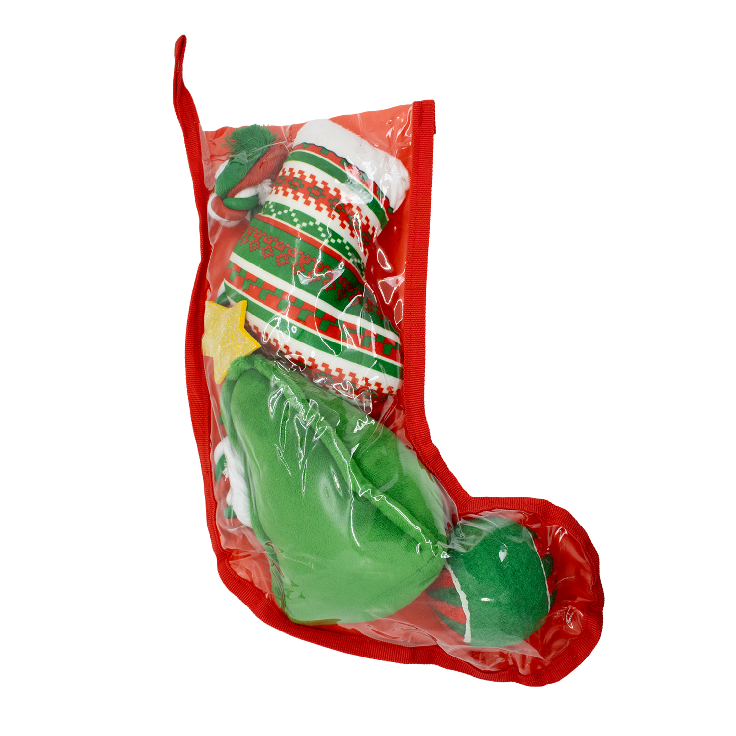 Hang this pre-stuffed 4pk Dog Toy Stocking by the chimney with care! We took some stress off Santa and pre-filled it with super fun toys that your pup will love. This set includes a rope, two plushes,…