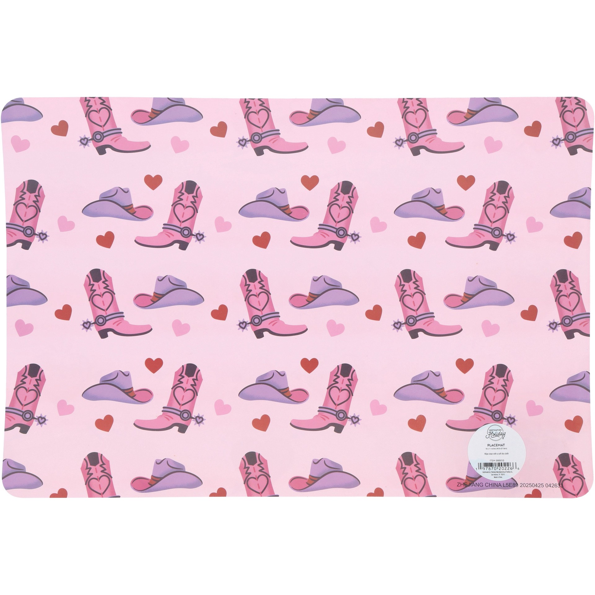Destination Holiday Boots & Hats 2-Sided Valentine's Placemat. Size:16"L X 11"W