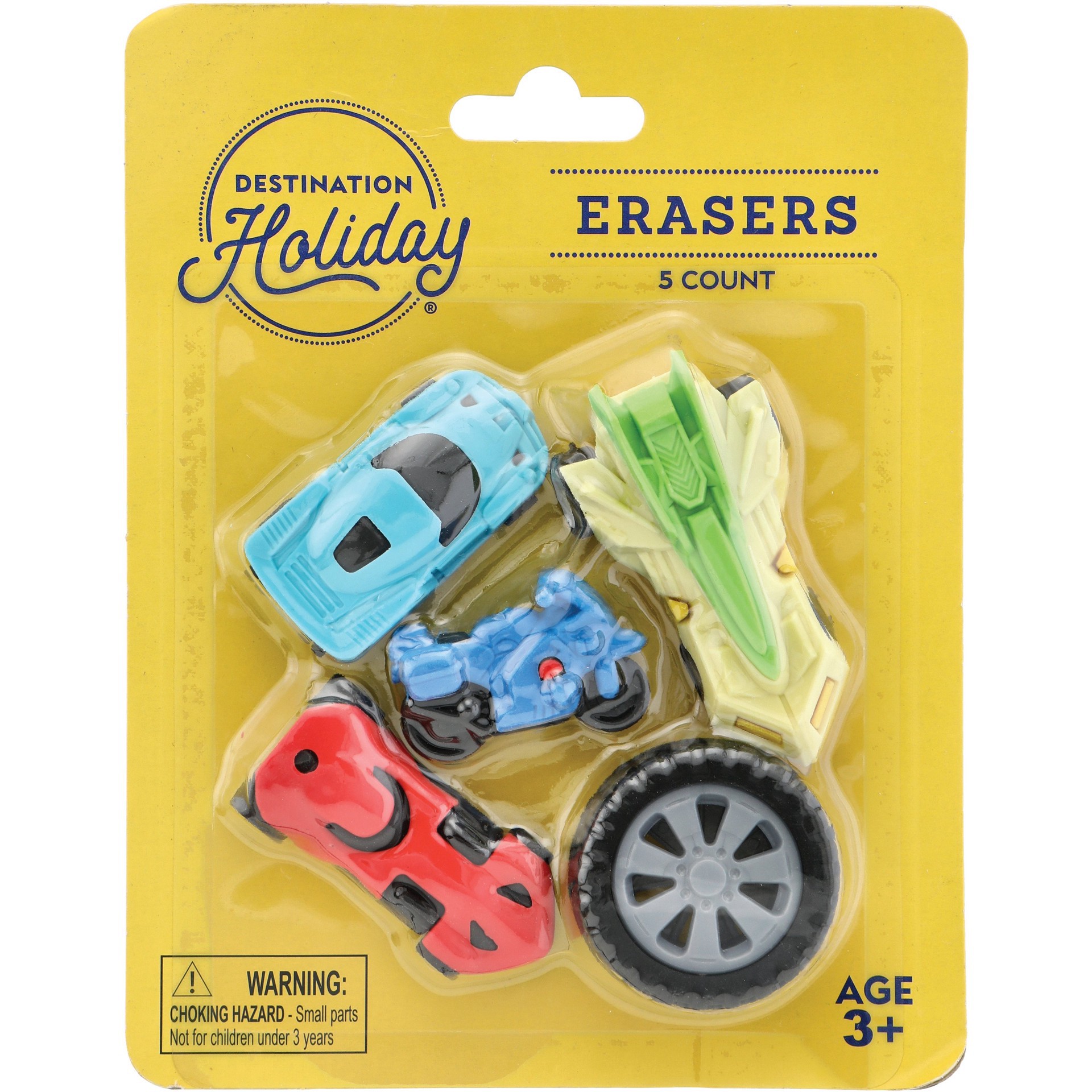 Rev up your erasing game with the Destination Holiday Car Theme Car Eraser Set. This 5-count set features erasers shaped like various vehicle types, adding a fun and dynamic touch to your school or of…