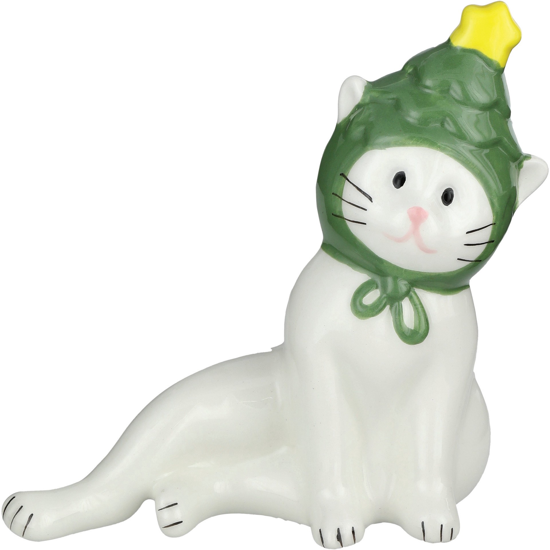 Transform your home for the holidays with the Destination Holiday 6-inch Ceramic Kitty with Christmas Tree Hat, perfect for creating a festive centerpiece for holiday meals or complimenting other Chri…