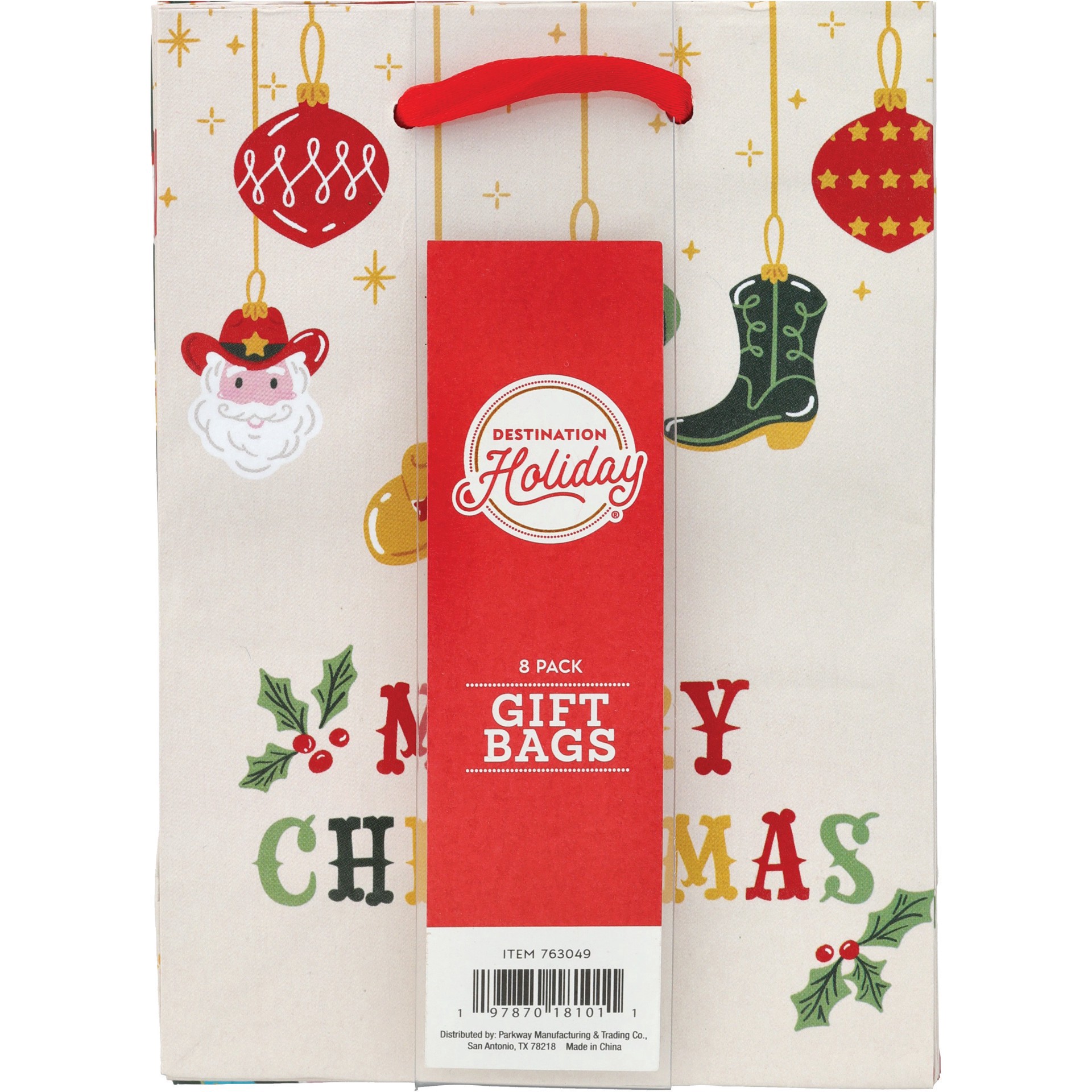 Destination Holiday Ornaments Mini Gift Bag Set, 8 ct , 4.25" x 4" x 2''. • 8 pack features two different designs