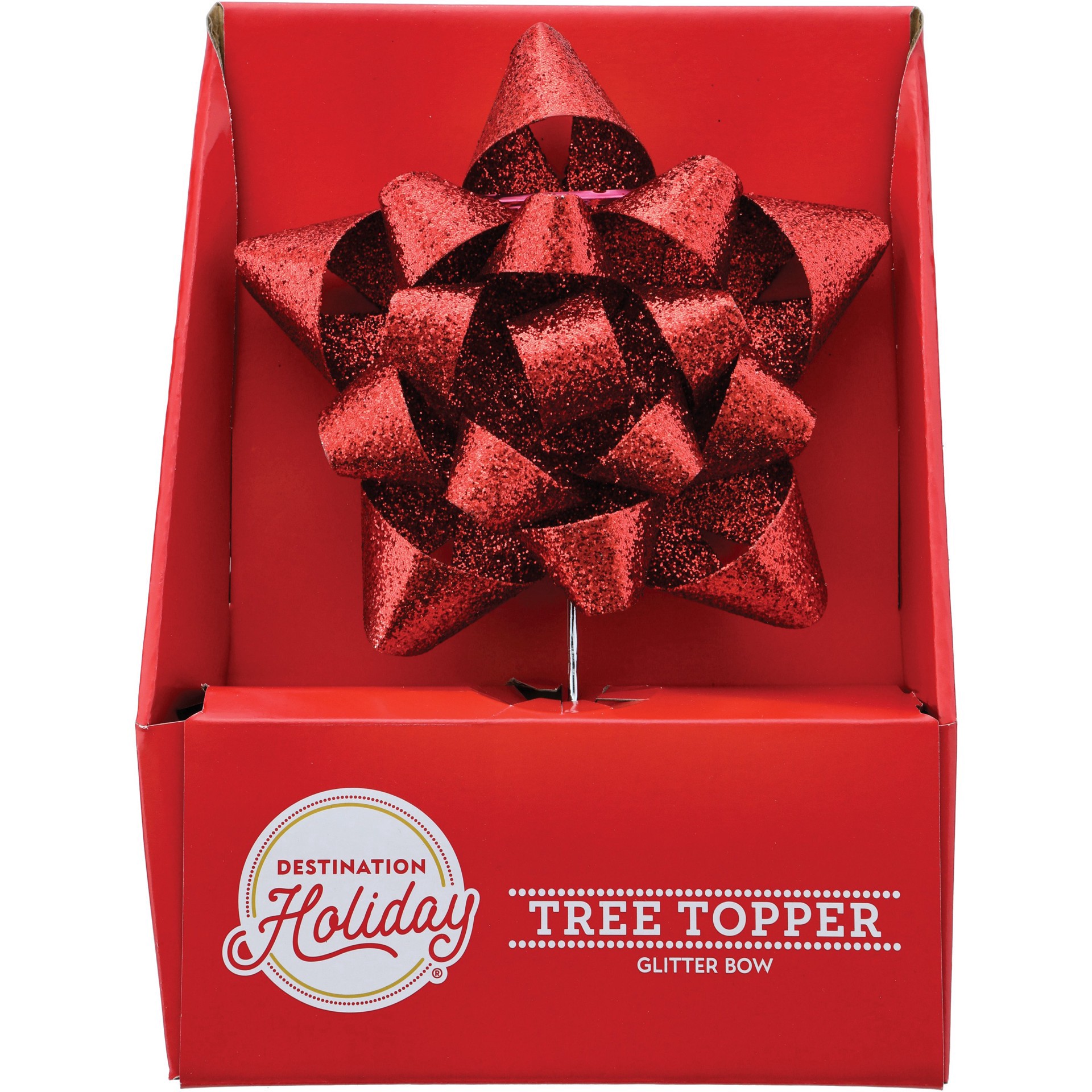 slide 1 of 1, Destination Holiday Red Glitter Bow Tree Topper, 10ftft