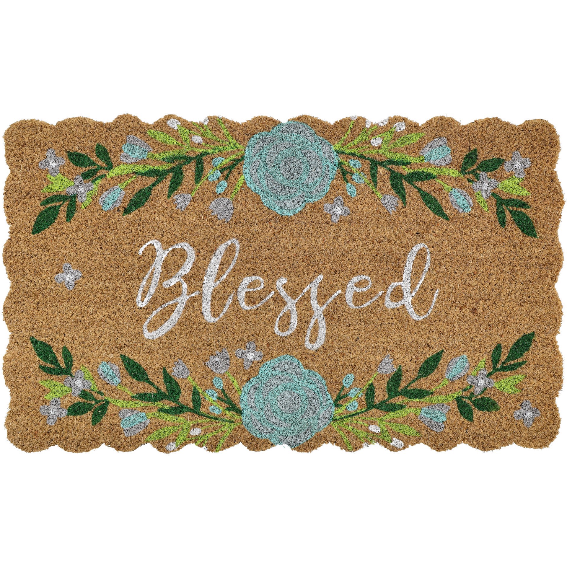 Destination Holiday Spring Coir Doormat - Blessed. Size: 18'' x 30''