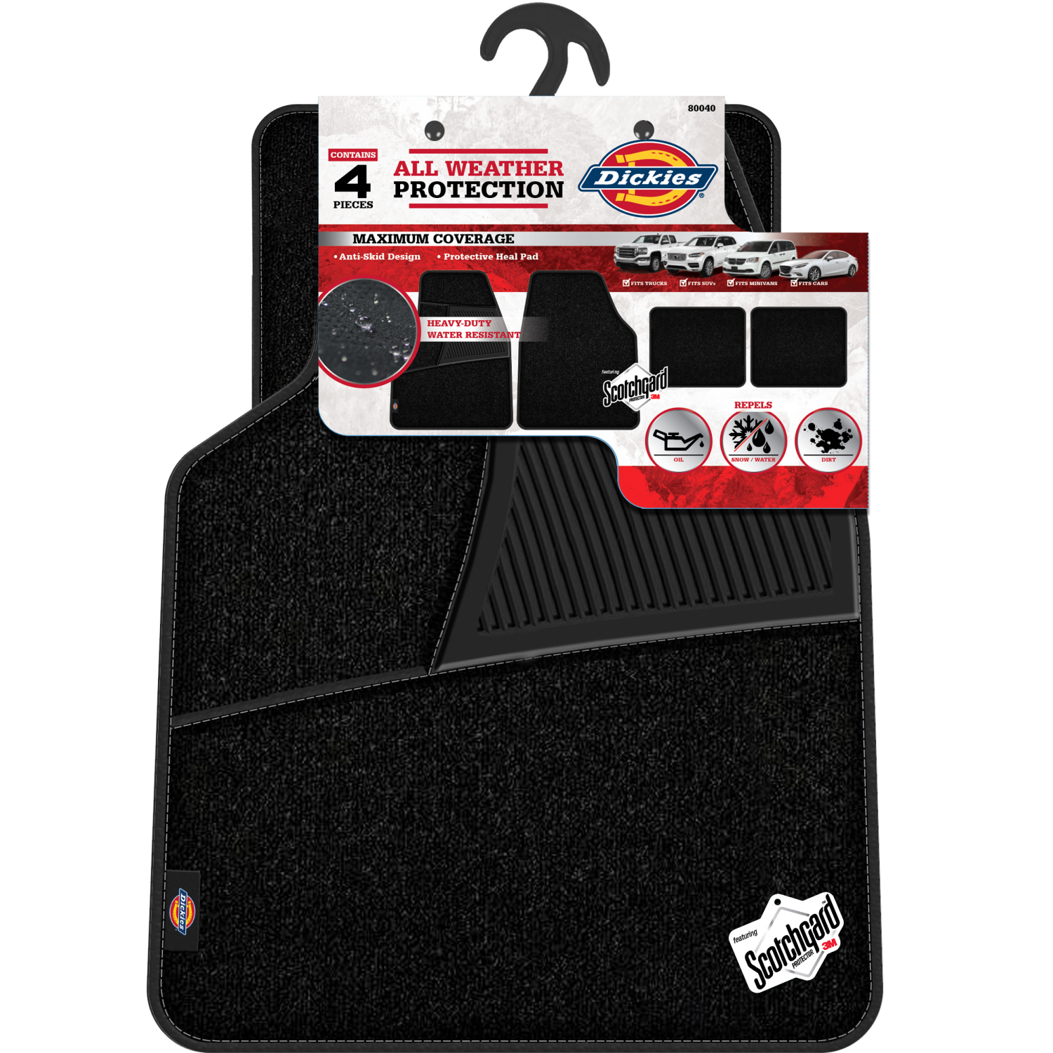 Youll be ready for whatever nature throws at you with the Dickies 4Piece Black HeavyDuty AllWeather Carpet Floor Mats. Each set is manufactured for durability and comes with two front and two rear mat…