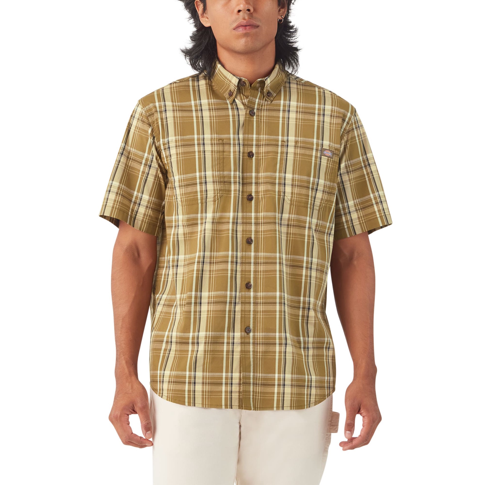 Dickies Men's Green Light weight Short sleeve Solid Button-down shirt ( Medium )