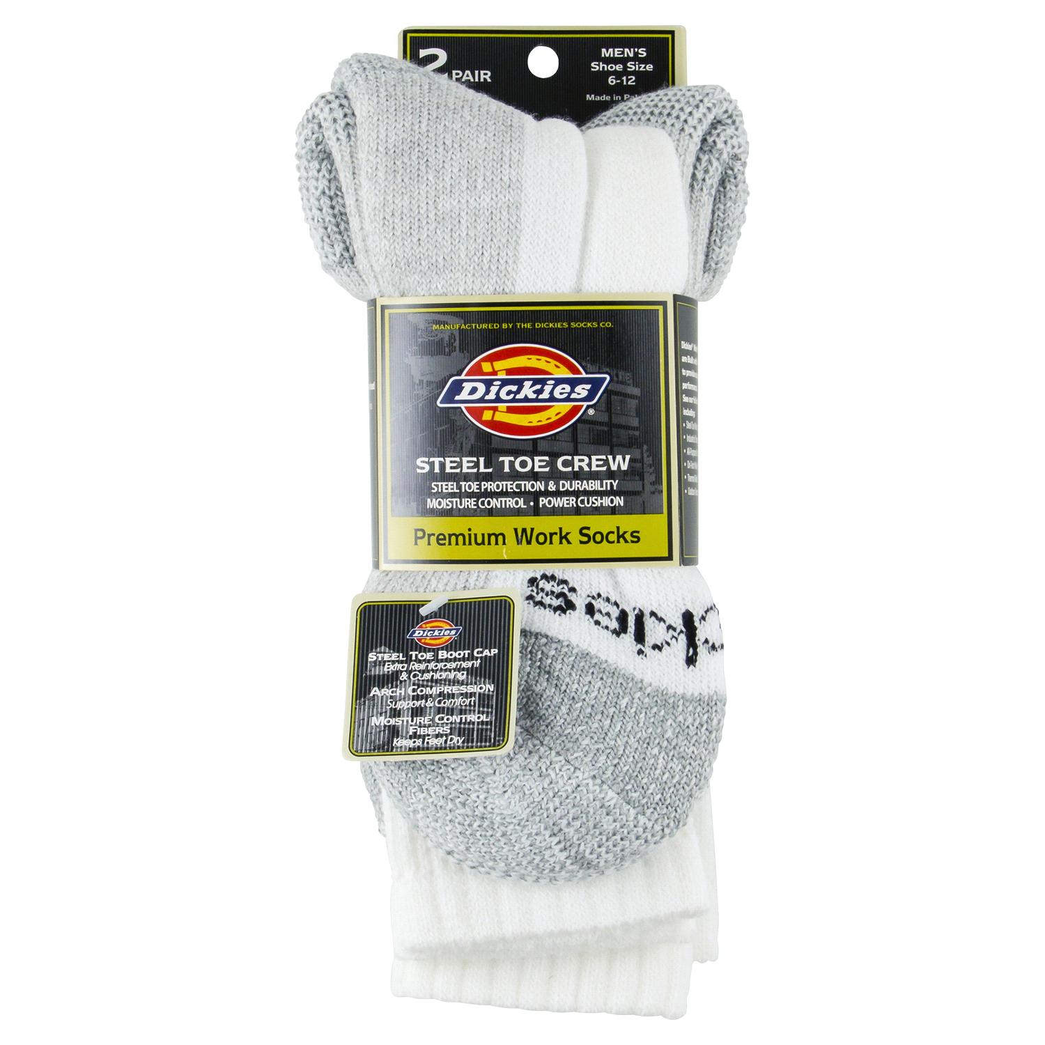 Dickies Steel Toe Crew Socks, 2 Pair, Size 6-12