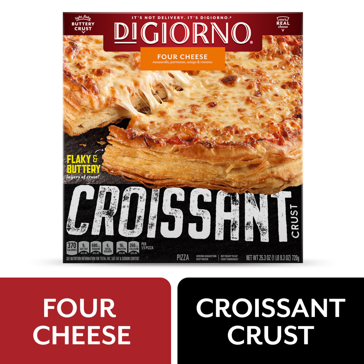 Enjoy the flaky, buttery layers of a croissant and your favorite four cheese pizza toppings with the DiGiorno Four Cheese Croissant Crust Pizza. This DiGiorno pizza crust turns golden brown, airy, and…