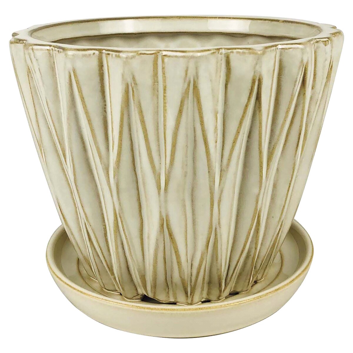 Dimensional Ceramic Planter with Attached Saucer, Bright White, 7.5"