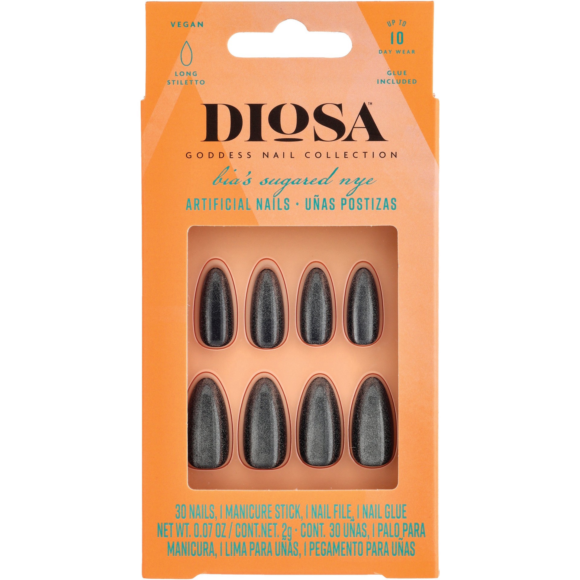 Diosa Bia's Sugared NYE Artificial Nails - Black Glitter