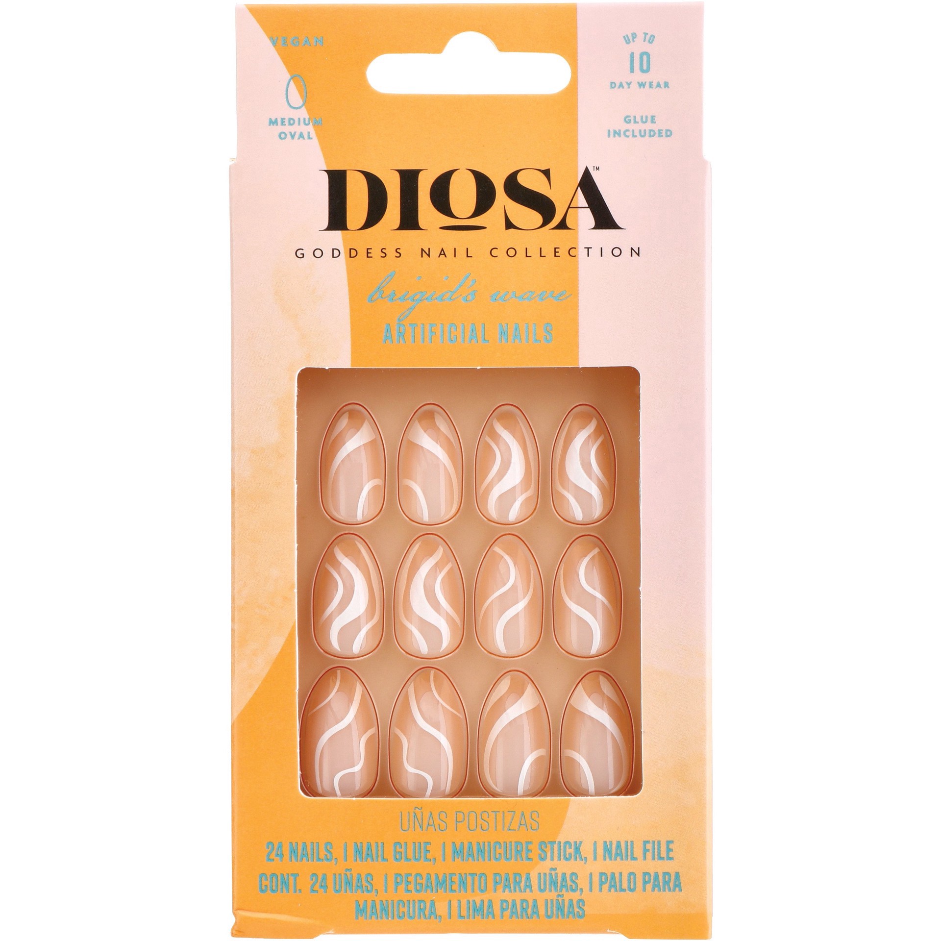 Skip the manicure appointment with these artificial nails from Diosa. Easy to apply with beige and white swirls, these nails will keep you looking good for up to 10 days, dont need a UV light to dry a…