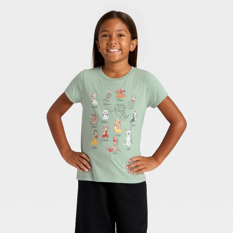 Style for a casual day out with the Girls' Disney 'Nice List' Dogs and Cats Holiday Short Sleeve Graphic T-Shirt in Green. Featuring a playful Disney-inspired design, this tee brings a fun vibe to eveā¦