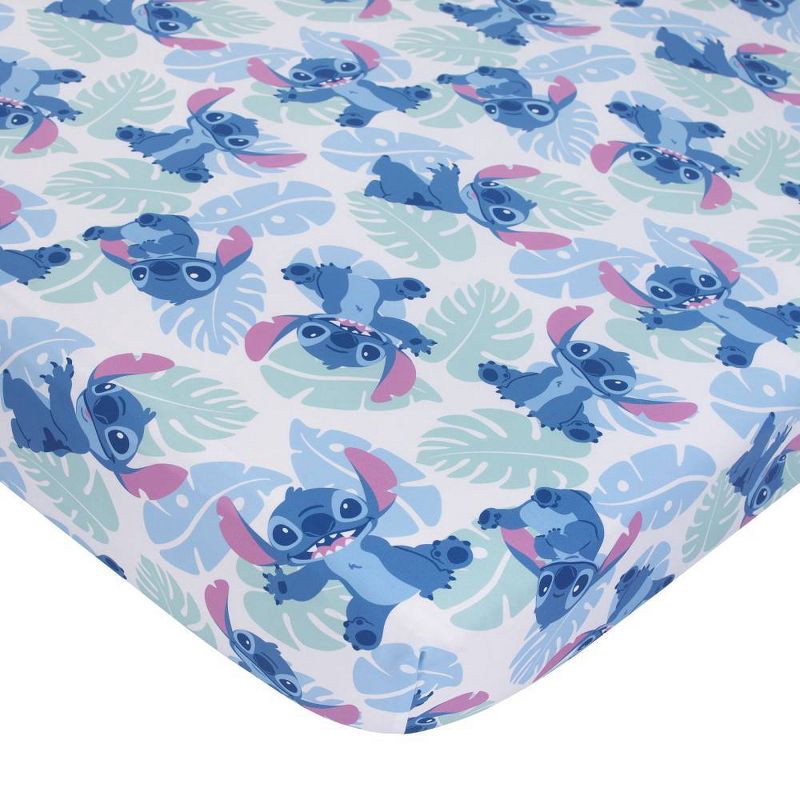 - The Stitch Fitted Crib Sheet features a playful smiling Stitch in a colorful allover pattern!