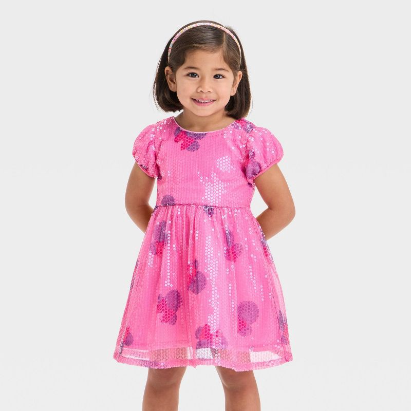 Enjoy a splash of pink with this sweet Minnie Mouse A-line dress for toddler girls. It's made from durable midweight fabric that holds up to all-day play and still feels soft and comfy. The short puff…
