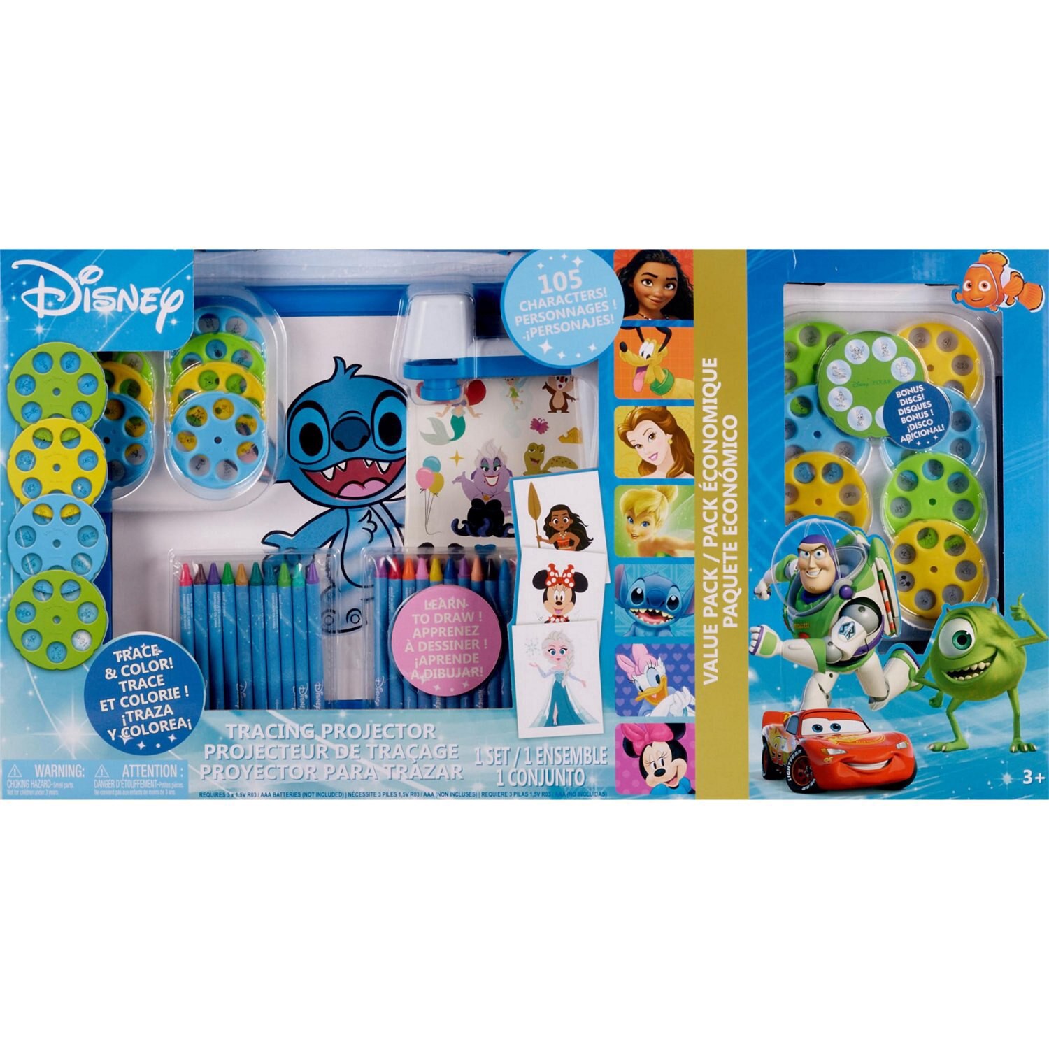 Draw and color your favorite Disney character. You can use it over and over again to create great pictures. This projector includes: tracing projector desk and arm (batteries not included — requires 3…