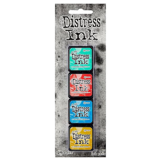 RANGER-Distress Mini Ink Kits. Features the same unique, water- based dye ink formula used in the full-size pads, but in a convenient stackable pad. The raised felt makes it easy to use on smaller cra…