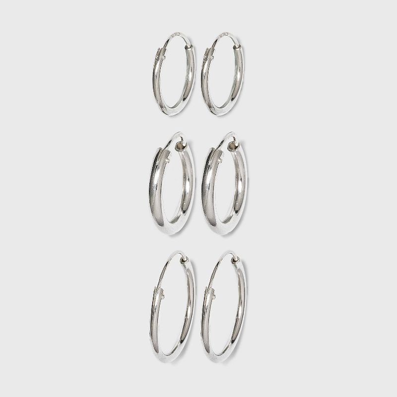 The Sterling Silver Endless Hoop Earring Set is perfect for adding a finishing touch to your look — the set includes 3 pairs of sterling silver hoop earrings so you'll have plenty of options when putt…