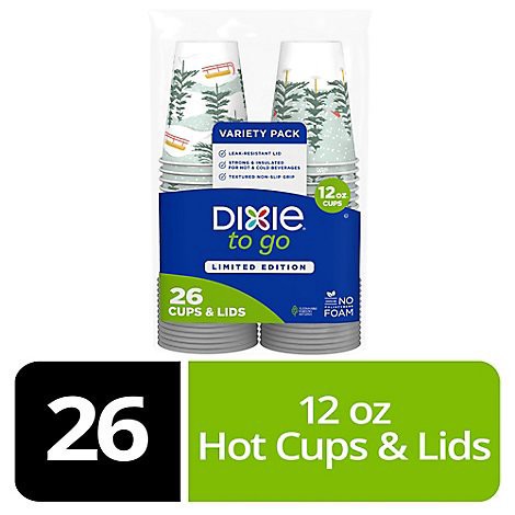 Dixie Paper Cups & Lid To Go Printed 12 Ounce - 26 Count