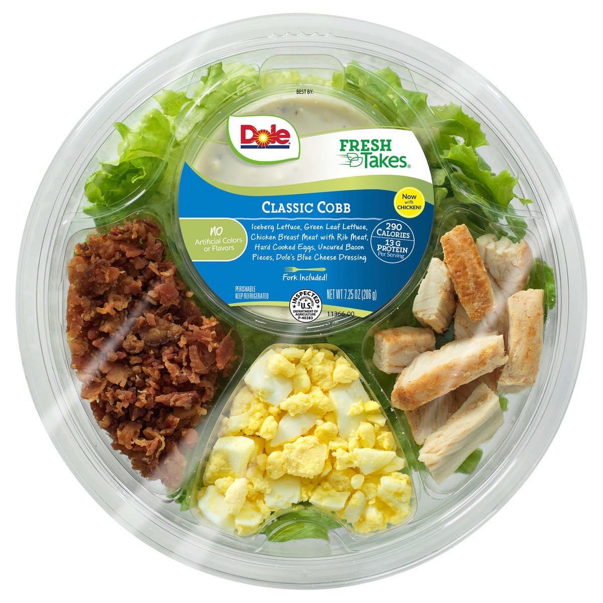 Iceberg Lettuce\, Blue Cheese Dressing (Soybean Oil\, Cultured Lowfat Buttermilk\, Water\, Blue Cheese [Pasteurized Milk\, Cheese Cultures\, Salt\, Enzymes]\, Distilled Vinegar\, Sugar\, Whole Egg\, E…