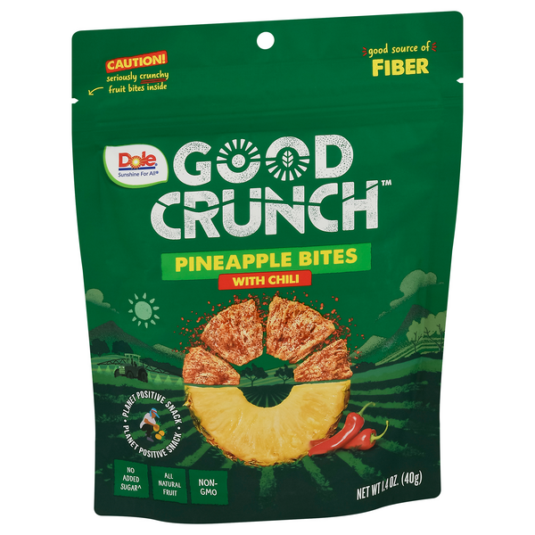 Dole Good Crunch mastering the art of tasty, healthy snacks that excite your senses, unleashing a chain of good in every crunch.
