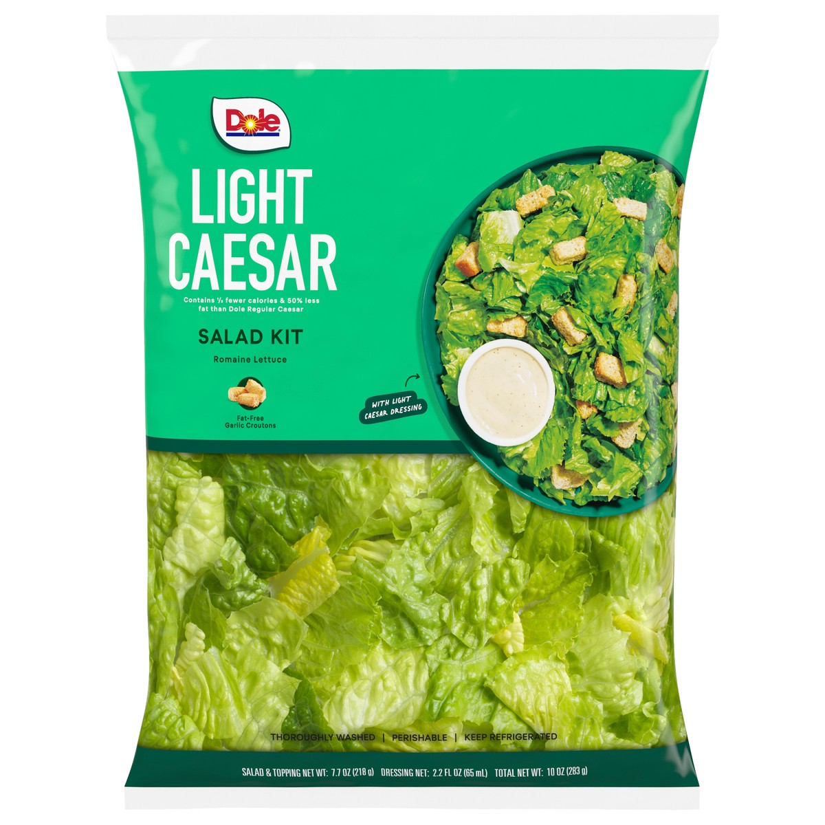 Thoroughly washed. This lower calorie classic delivers big flavor with fat-free garlic croutons, crisp Romaine lettuce and Dole's Light Caesar Dressing.
