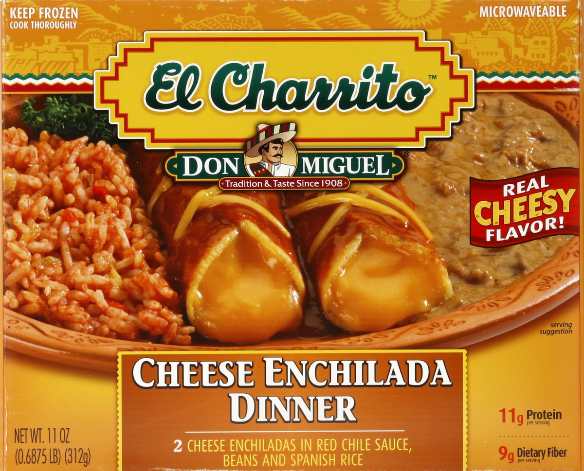 1 cheese enchiladas in red chile sauce, beans and Spanish rice. 11 g protein per serving. 9 g dietary fiber per serving. Microwaveable. Tradition and taste since 1908.