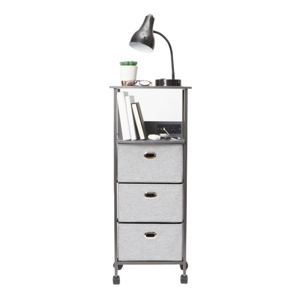 Dormify Sutton Charging 3-Drawer Cart On Wheels, 39-7/16"" X 11-15/16"", Gray