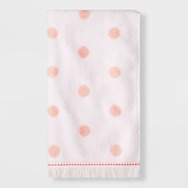 Add a fun touch of prints to their bath decor with this Pink Dot Towel with SILVADUR™ Antimicrobial Technology from Pillowfort™. This practical hand towel is a must-have addition to their everyday bat…