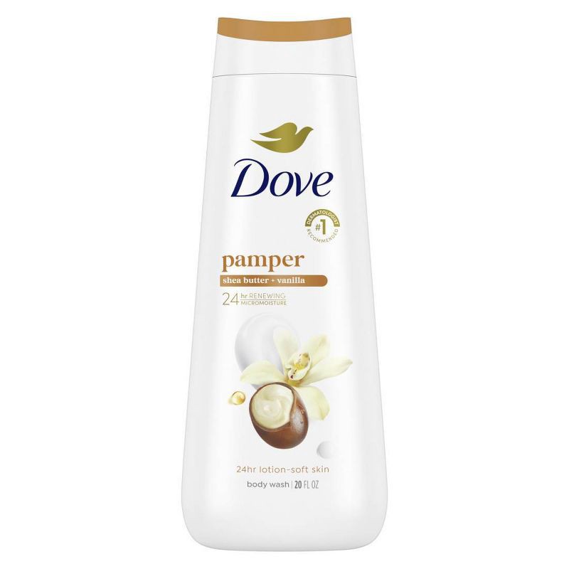 - PAMPER: Dove Pampering Body Wash has a rich, creamy texture and is full of skin-loving nourishers to moisturize your skin as the shea butter and warm vanilla scent pampers your senses with every shower.