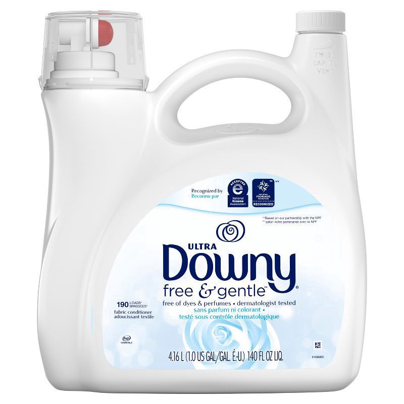 Downy Free & Gentle Liquid Fabric Softener, 140 fl oz, 190 Loads, Hypoallergenic, Sensitive Skin Friendly Fabric Conditioner Liquid