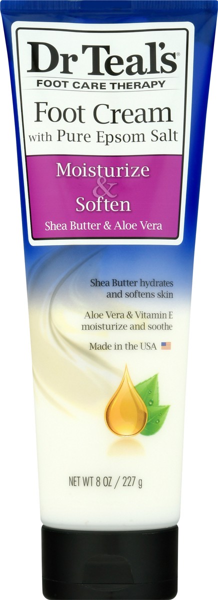 Foot cream with pure epsom salt. Shea butter & aloe vera. Foot care therapy. Shea butter hydrates and softens skin. Aloe Vera & vitamin E moisture and soothe. Dr Teal's shea ernriched foot cream is fo…