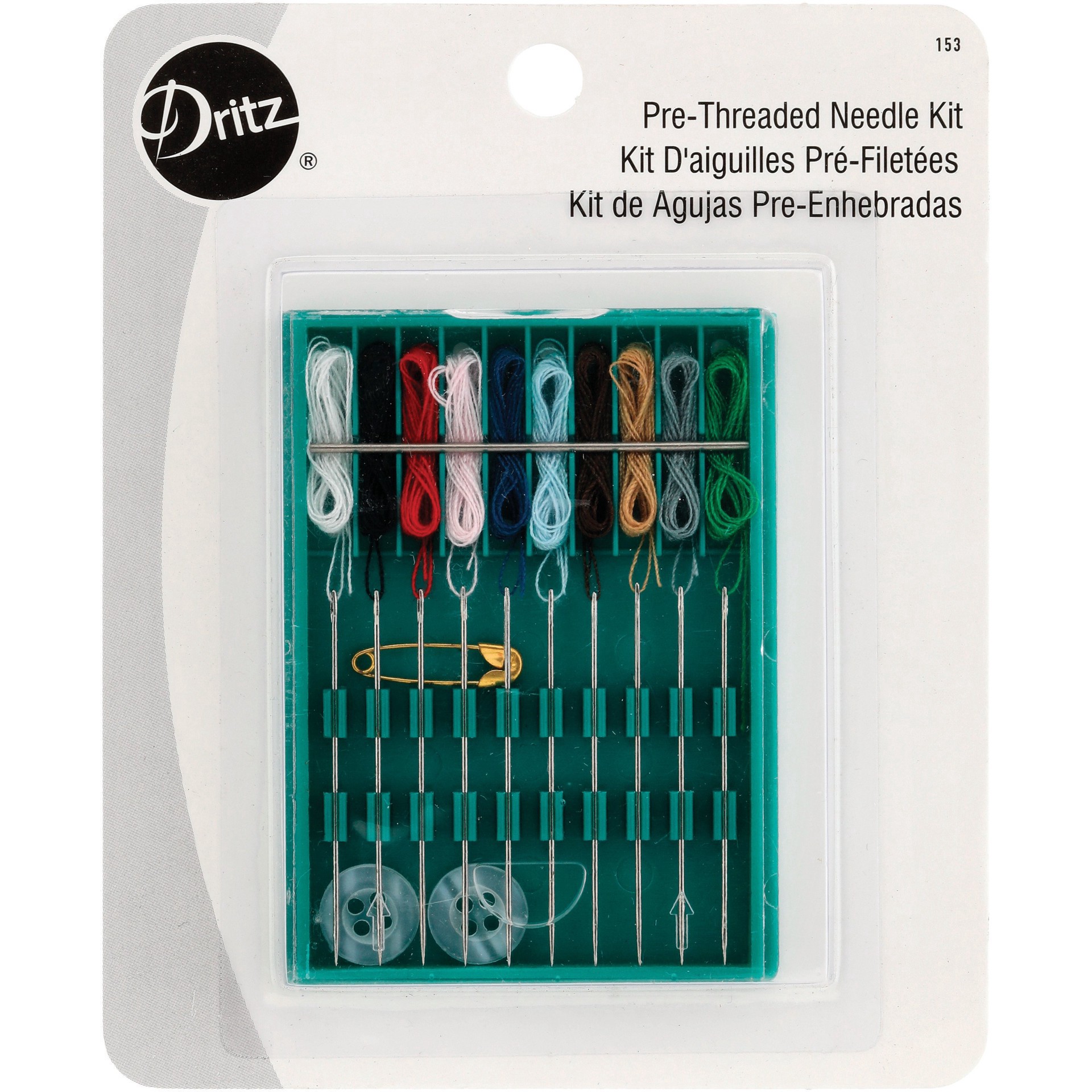 The Dritz Pre-Threaded Needle Kit is perfect for quick repairs and emergency fixes. It contains 2 buttons, 1 Safety Pin and 10 pre-threaded hand needles with white, black, red, pink, brown, tan, roya…