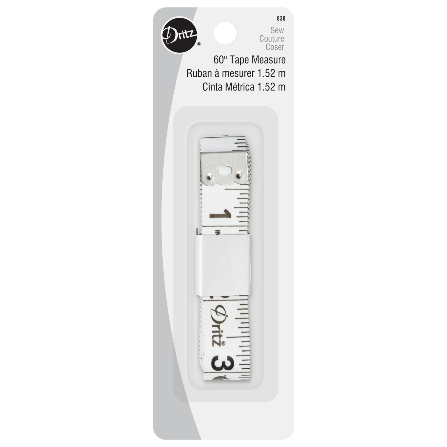 This Dritz Tape Measure is made of nonstretch, reinforced fiberglass with 116 markings for accuracy. Metric and inches on reverse side. Classic lightweight 58inch wide tape perfect for body measuremen…