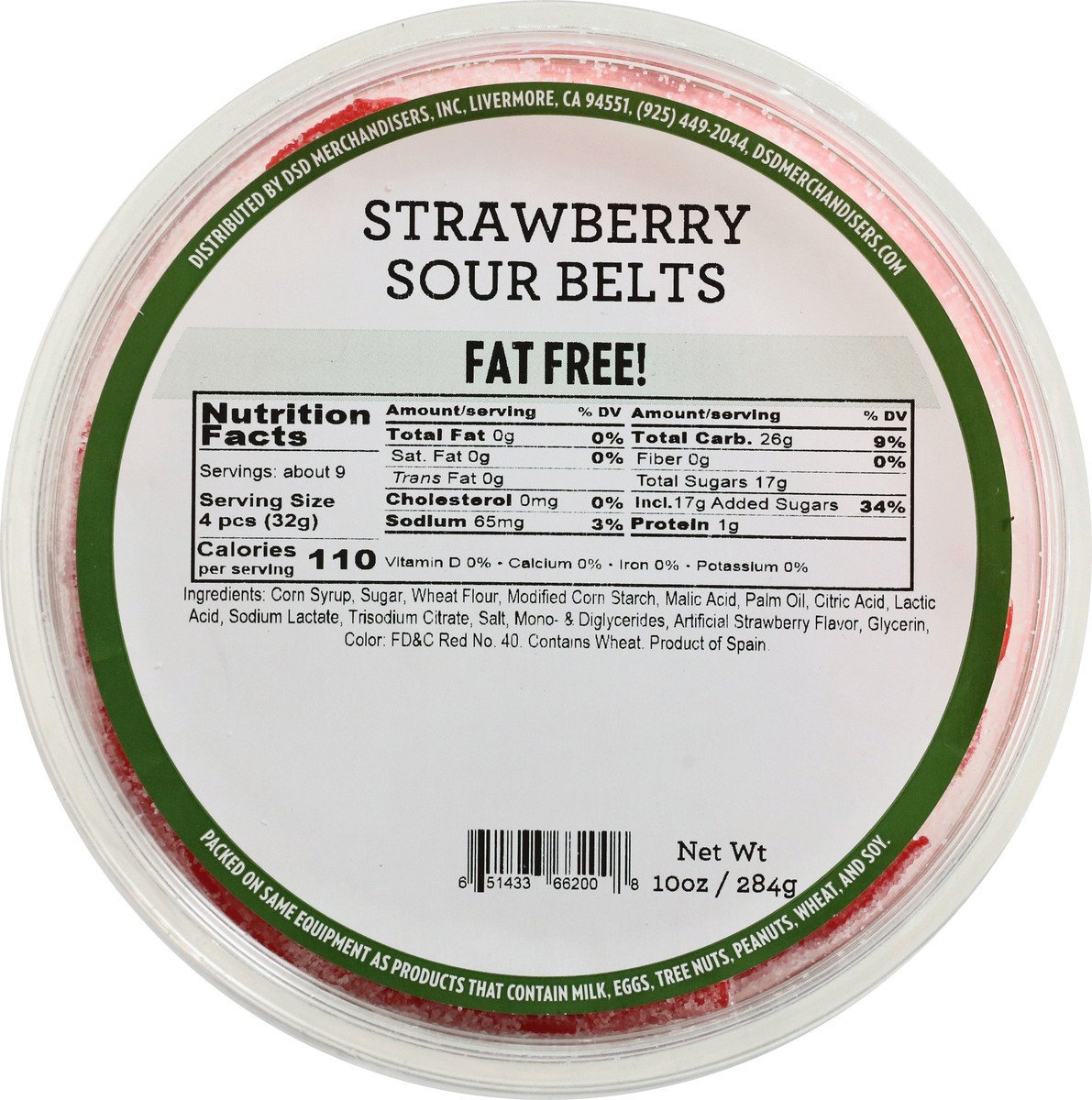 Corn Syrup, Sugar, Wheat Flour, Modified Corn Starch, Malic Acid, Palm Oil, Citric Acid, Lactic Acid, Sodium Lactate, Trisodium Citrate, Salt, Mono- & Diglycerides, Artificial Strawberry Flavor, Glyce…