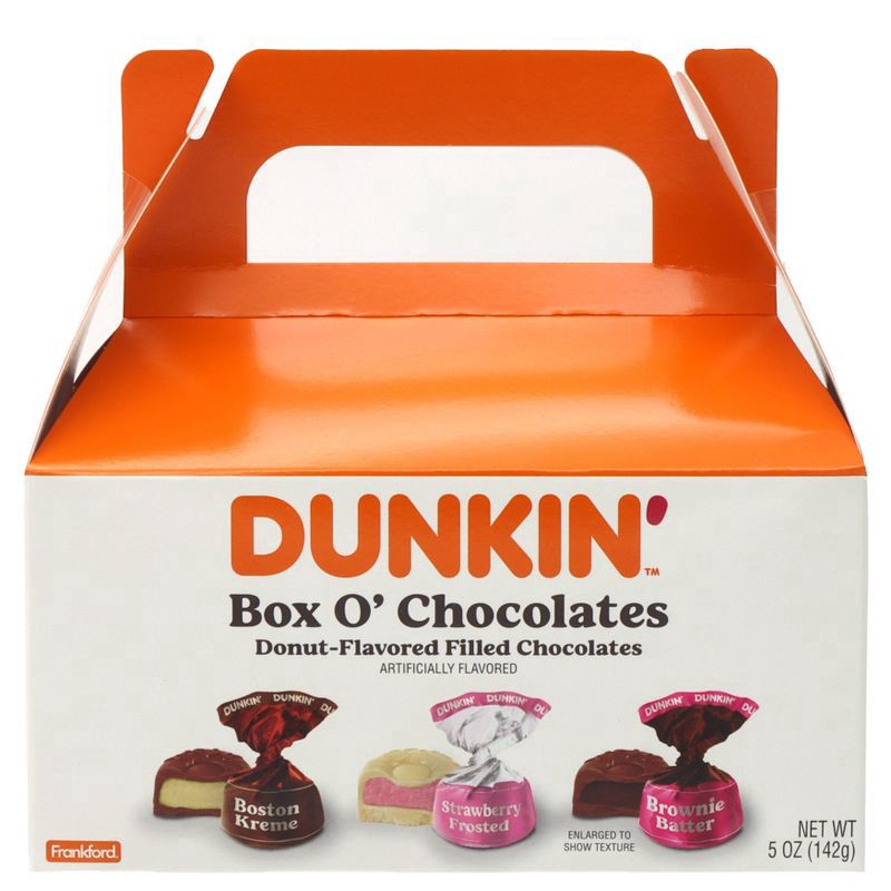 The iconic Dunkin' munchkin box with a surprise twist, each box is filled with 5 ounces of delicious chocolates. This mini Box O' Chocolates comes inspired by three different iconic Dunkin' flavors: B…