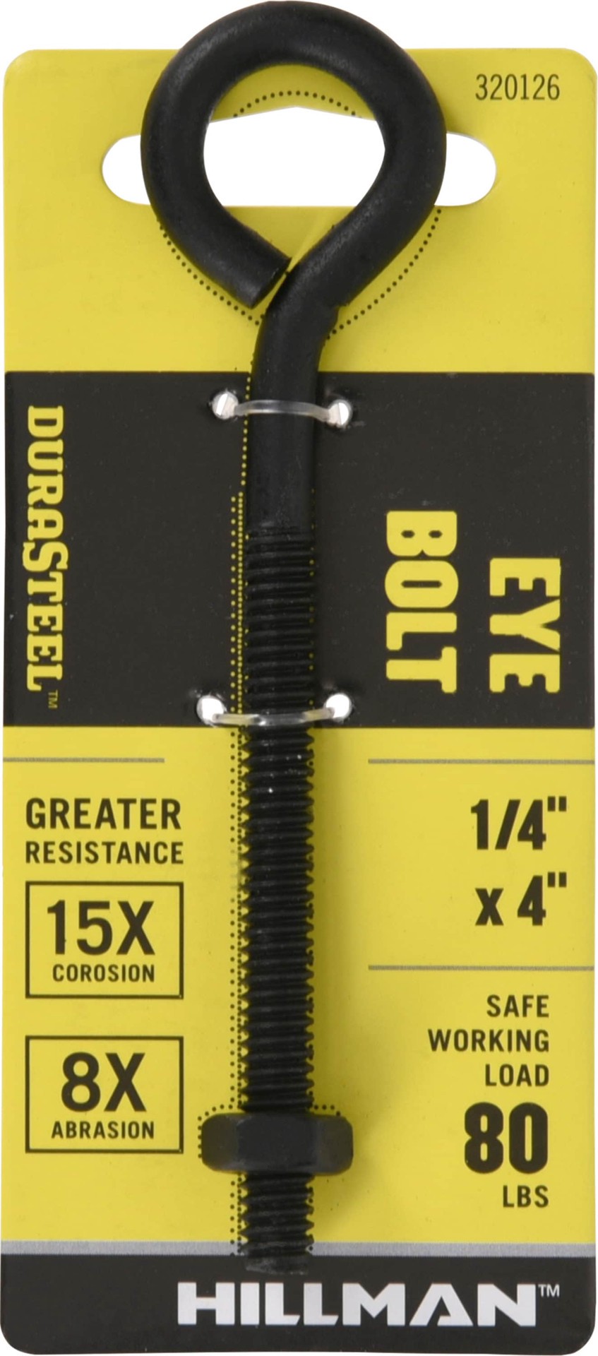 DuraSteel 1/4-in 1/4-in x 4-in Black phosphate Interior/Exterior Coarse Thread Eye Bolt