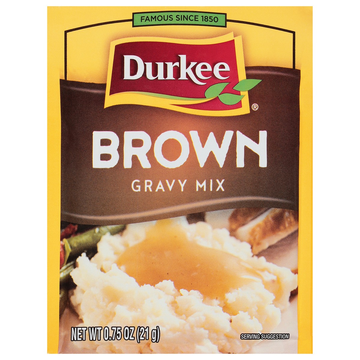 Create a rich and velvety sauce with Durkee Brown Gravy Mix. Perfect for holiday and comfort meals\, Durkee makes it easy to get a delicious gravy on the table quickly no matter the occasion. Brown gr…
