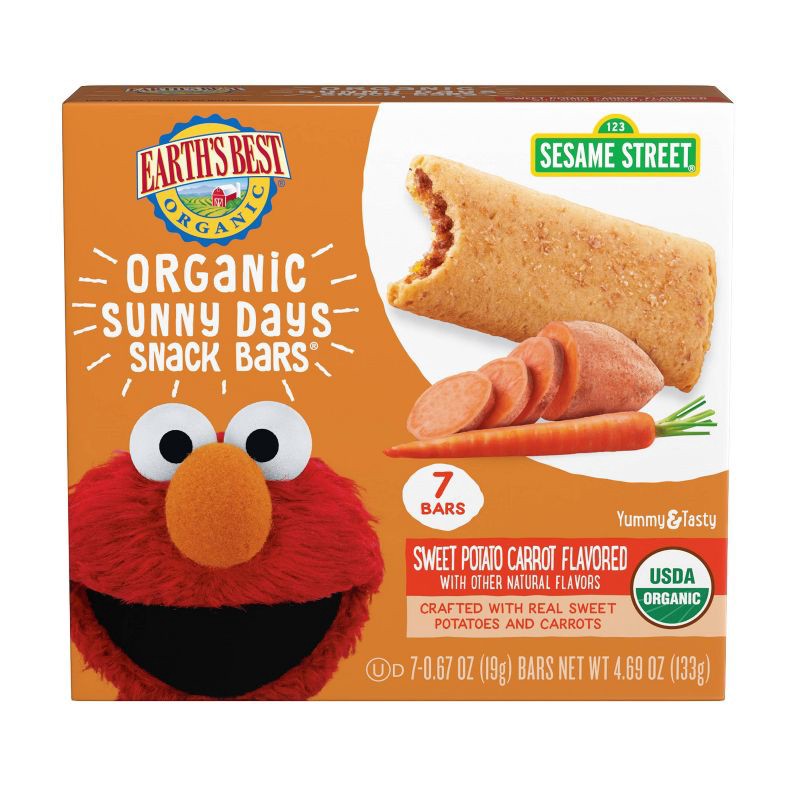 Earth's Best Organic Sesame Street Sweet Potato Carrot Sunny Days Snack Bars are made with delicious carrots and sweet potatoes enclosed in a wholesome wheat, oat and corn flour cereal crust. These ba…