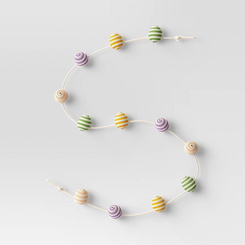 Bring festive cheer to your holiday decor with this Egg Decorative Garland from Threshold™. This decorative garland features a white string adorned with striped Easter eggs in pastel colors for a beau…